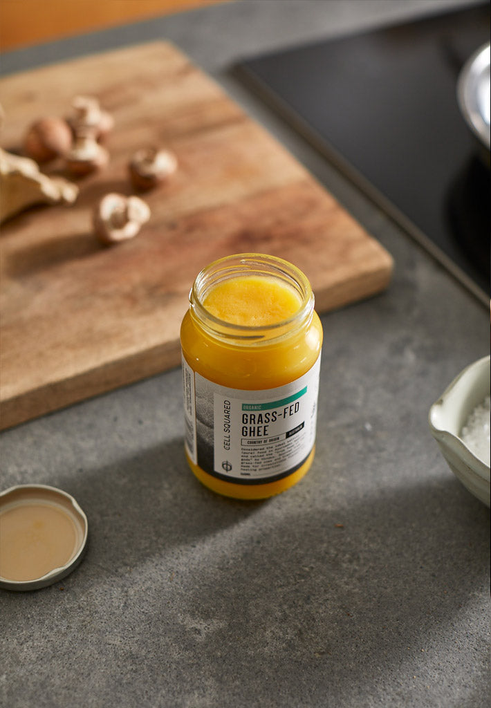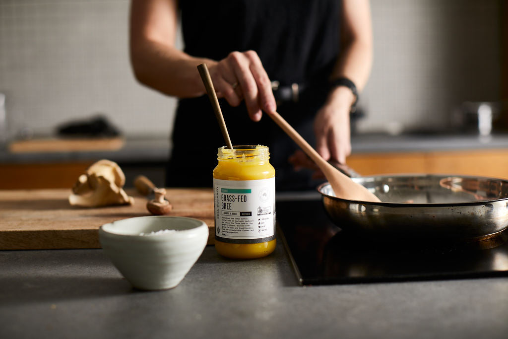 Once separated, the milk solids and impurities (lactose + casein) are removed. Resulting in pure butterfat which retains all nutrients while keeping the delicious nutty, caramel-like taste & aroma that ghee is known for. When ghee is used to cook with, it helps to deepen flavours & assist with the uptake of fat-soluble nutrients.