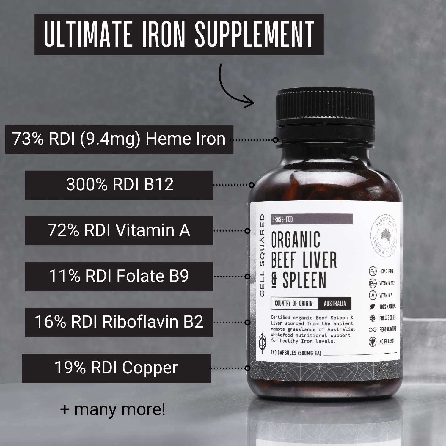 Beef organs such as Spleen & Liver are a rich source of easily absorbed Heme Iron & present a natural way to start replenishing & maintaining your IRON levels.