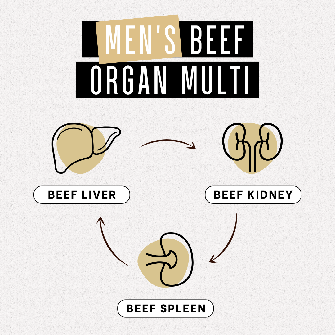 Our unique blend of nutrient-dense beef organs offers a synergy of easily absorbed essential nutrients, playing a crucial role in supporting overall Men's diet & nutrition.