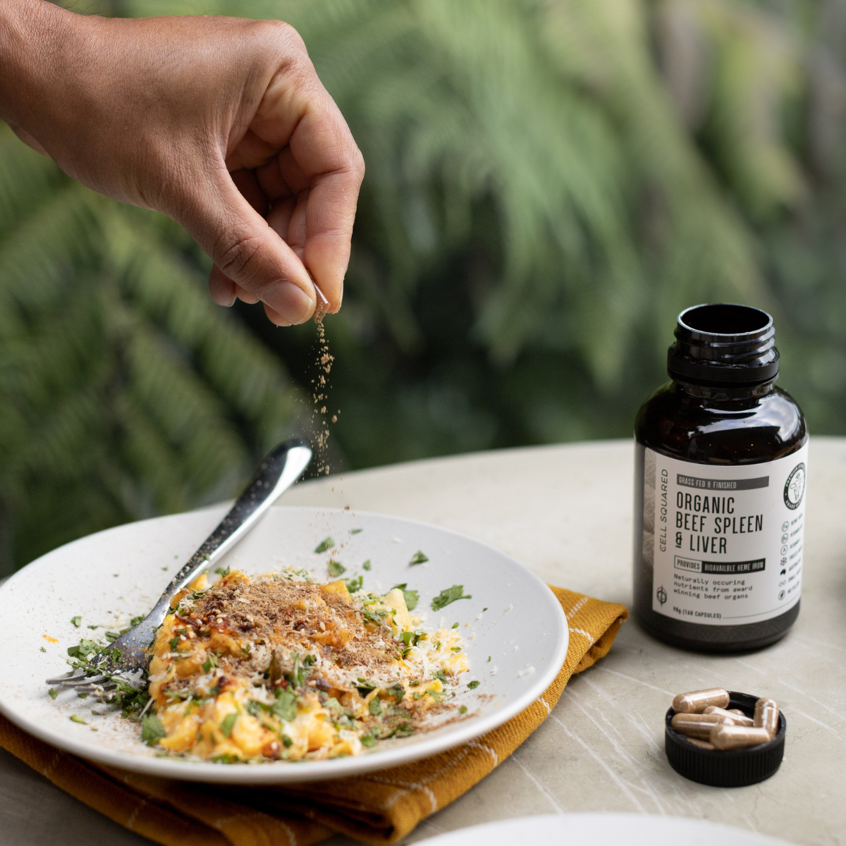 Our 100% natural wholefood dried beef organs offal powders are encapsulated for those who have sensitive tastes & smell. No prep. No mess. Just pure nutrition™