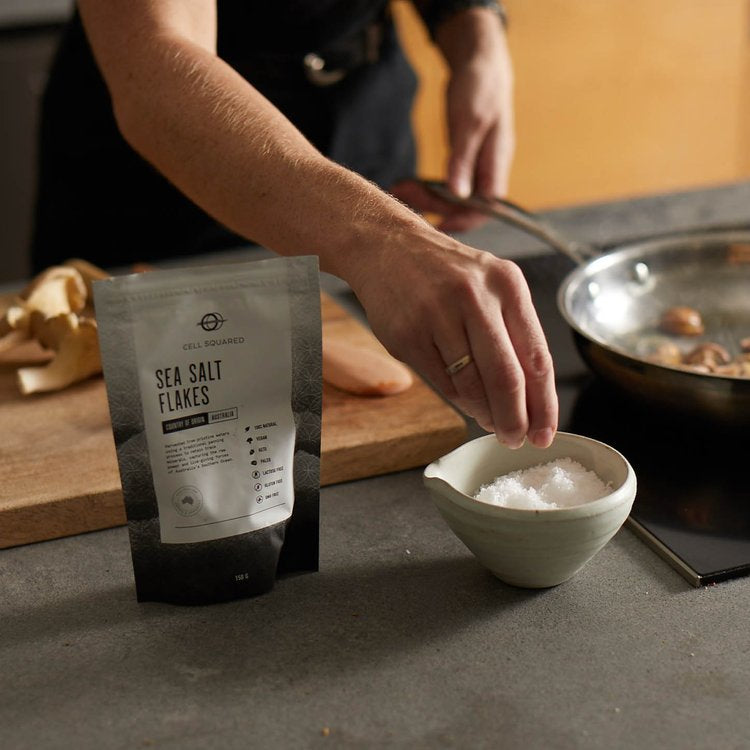 Sprinkling Sea Salt Flakes over meals not only amplifies the flavour profile, they also help to kick start digestion by signaling to your brain that food is coming in and it’s time to fire up the digestive process!